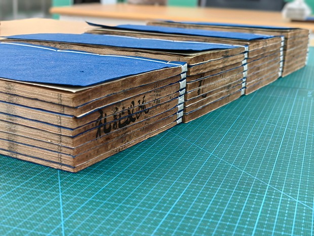 此次培训由古籍修复专家、国家级古籍修复技艺传习所导师杨利群老师授课,为学员提供了极其难得的学习机会。杨利群导师为学员进行耐心细致的技艺传授,从选纸选材讲起,一步步教大家在实践课上,完成了裁纸、折叶、压平、纸捻制作、四眼线装书制作的了解和制作。学员们热情高涨,致力在培训班期间提升自己的技艺,抓住每一个机会向杨老师、各组长请教,加班加点、废寝忘食的进行书叶修复实践。通过理论联系实践、导师亲临指导,学员技艺提高神速,精彩习作纷呈。